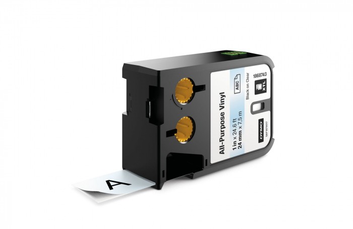 Rhino Dymo xtl taśma winylowa trwała (24 mm), czarna na przezroczystym 7m długości