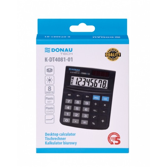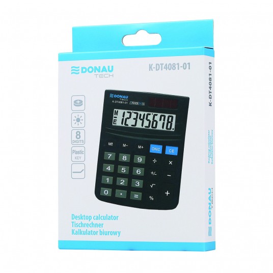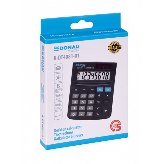 Kalkulator biurowy DONAU TECH, CI-SDC805NR, 8-cyfr. wyświetlacz, wym. 130x104x19 mm, czarny