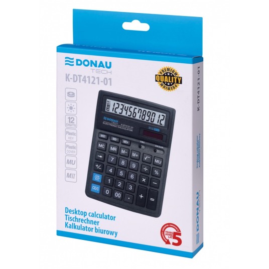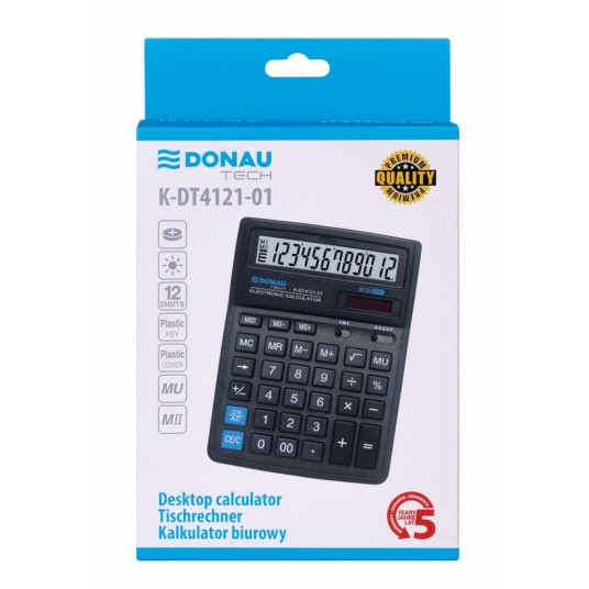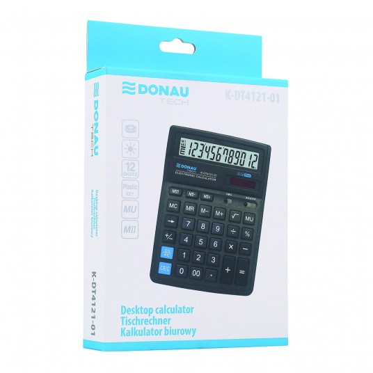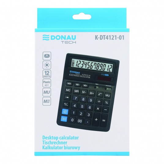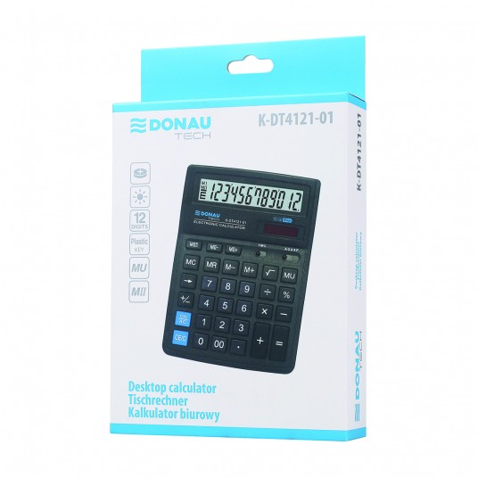Kalkulator biurowy DONAU TECH, CI-SDC444S, 12-cyfr. wyświetlacz, wym. 190x143x40 mm, czarny