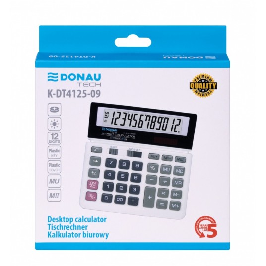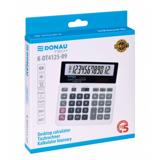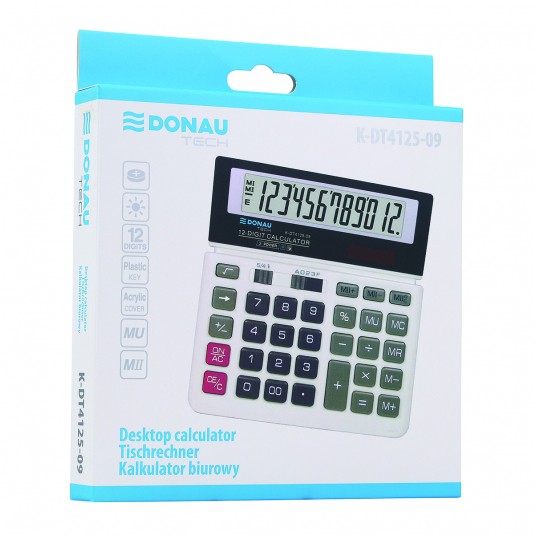 Kalkulator biurowy DONAU TECH, CI-SDC368, 12-cyfr. wyświetlacz, wym. 155x152x28 mm, biały