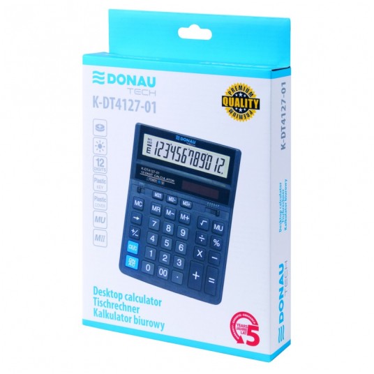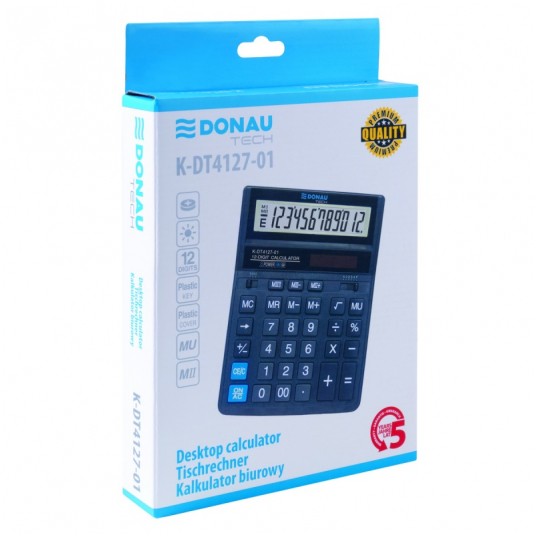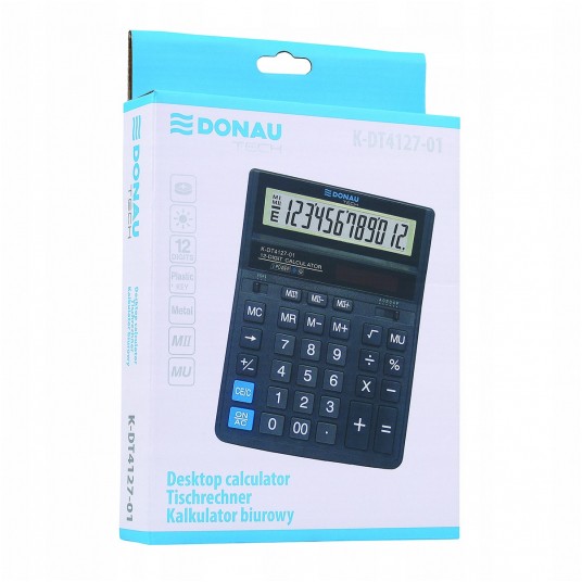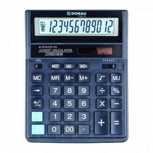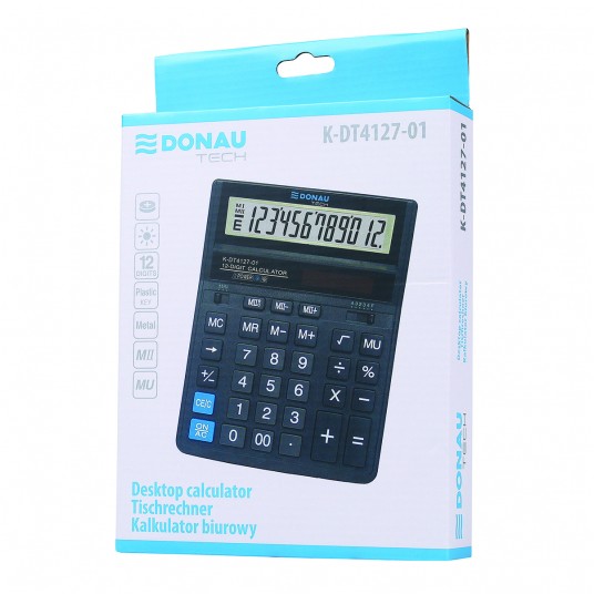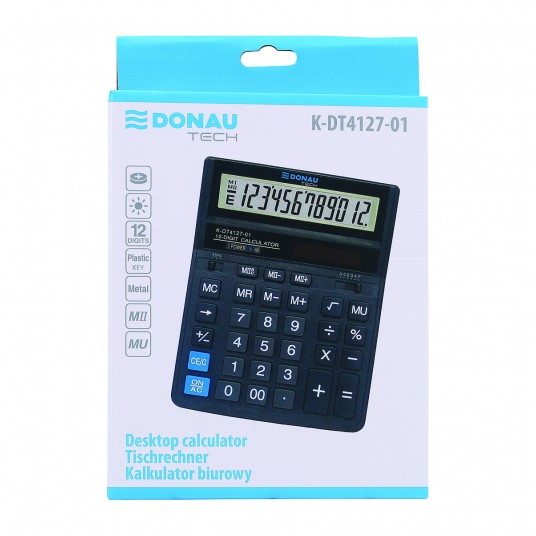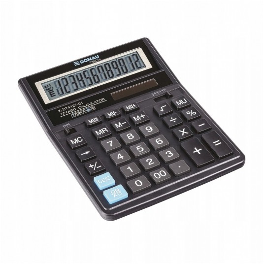 Kalkulator biurowy DONAU TECH, CI-SDC888XBK, 12-cyfr. wyświetlacz, wym. 203x158x31 mm, czarny