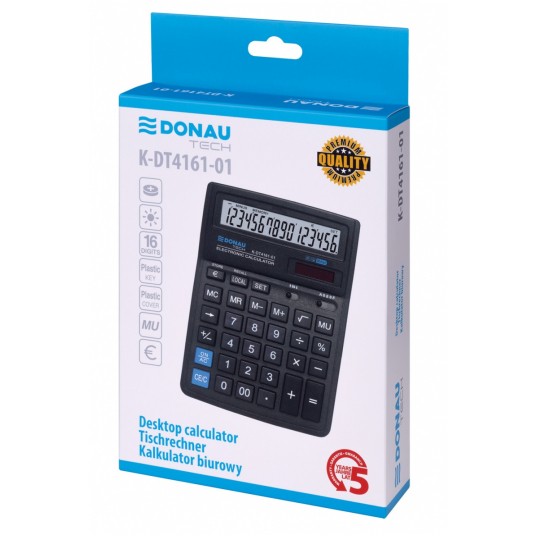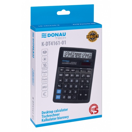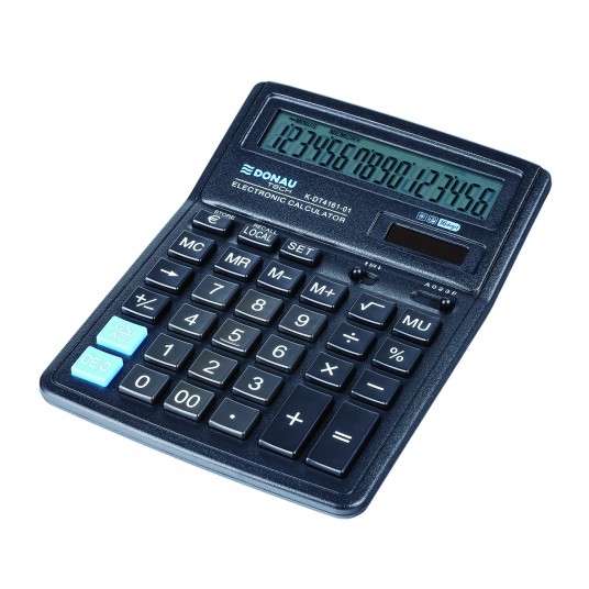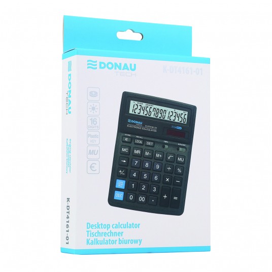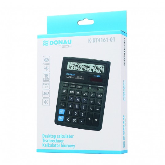 Kalkulator biurowy DONAU TECH, CI-SDC664S, 16-cyfr. wyświetlacz, wym. 190x143x40 mm, czarny