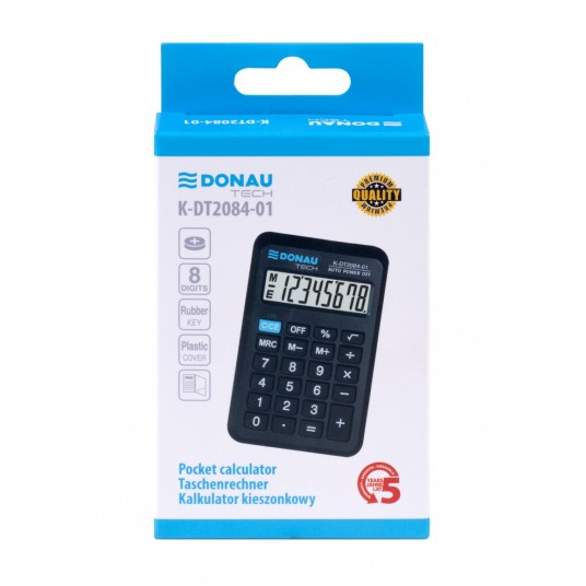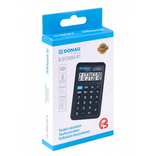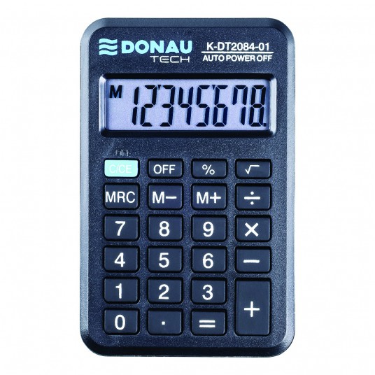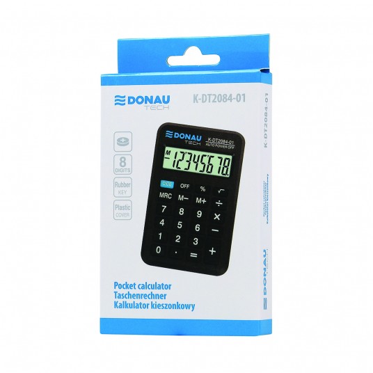 Kalkulator kieszonkowy DONAU TECH, CI-LC210NR, 8-cyfr. wyświetlacz, wym. 97x62x11 mm, czarny