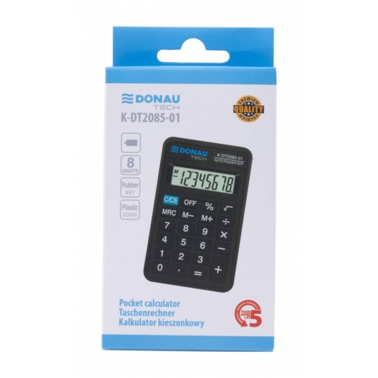 Kalkulator kieszonkowy DONAU TECH, CI-LC310NR, 8-cyfr. wyświetlacz, wym. 114x69x19 mm, czarny