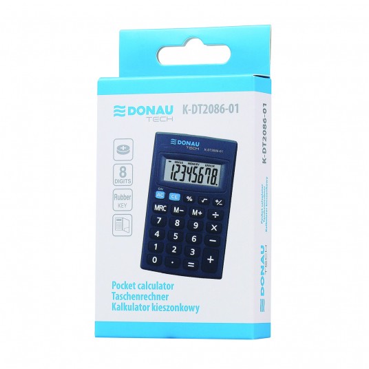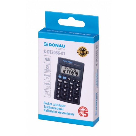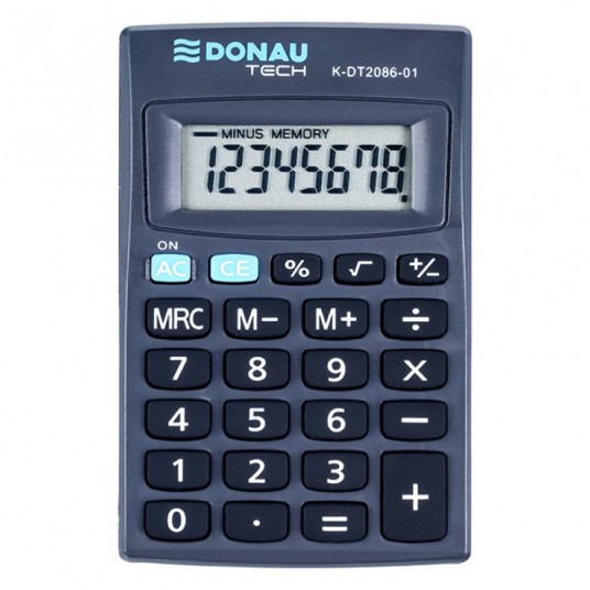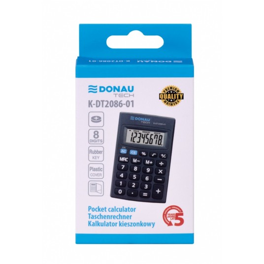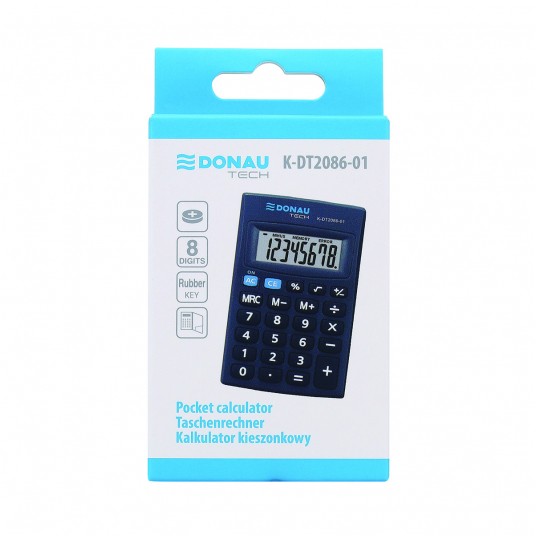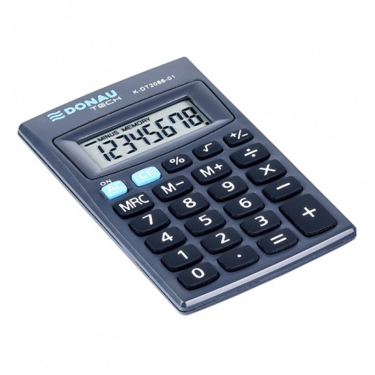 Kalkulator kieszonkowy DONAU TECH, 8-cyfr. wyświetlacz, wym. 85x56x9 mm, czarny