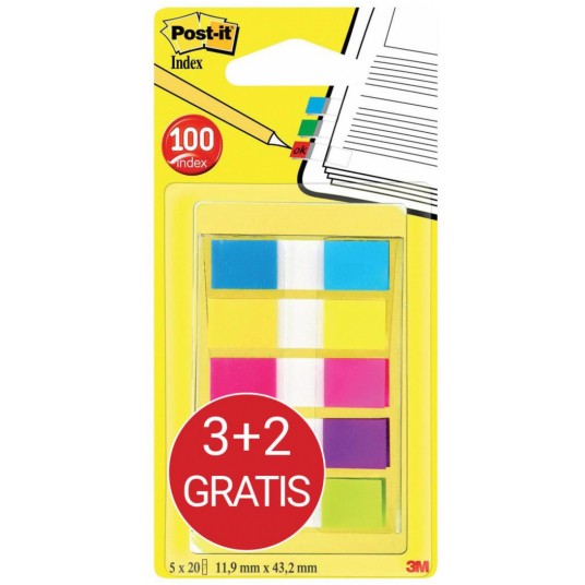 Zakładki indeksujące Post-it® (683-5cbp), 11,9mmx43,1mm, 3x20+2x20, mix kolorów