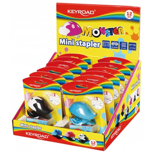 Zszywacz Keyroad mini+zszywki, zszywa do 20 kartek,, pakowane na displayu, mix kolorów