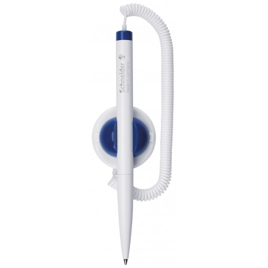 Długopis klick-fix-pen Schneider, na sprężynce, samoprzylepny, m, blister, biały / niebieski