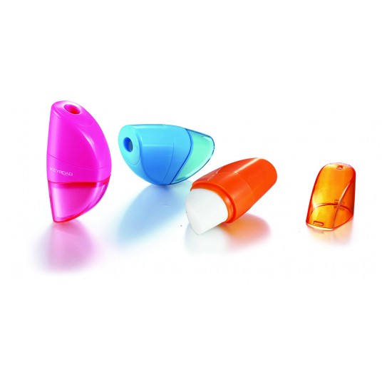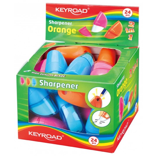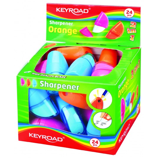 Temperówka Keyroad orange, Plastikowa, pojedyńcza, z gumką, pakowane na displayu, mix kolorów
