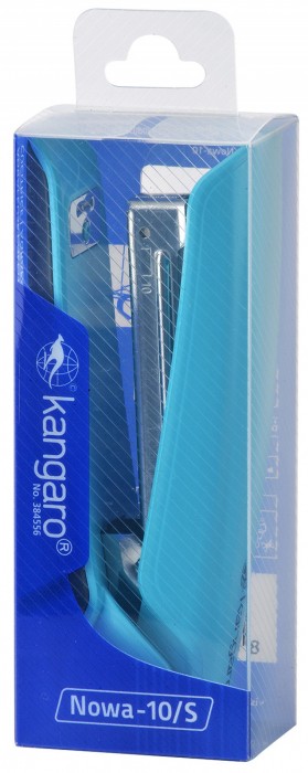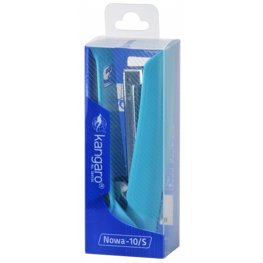 Zszywacz Kangaro nowa-10/s, zszywa do 15 kartek, Plastikowy, w pudełku pp, turkusowy