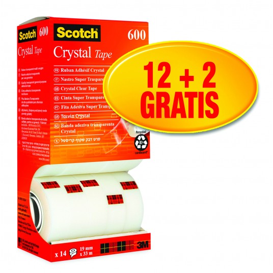 Taśma biurowa Scotch® crystal (6-1933r14), 19mm, 33m, 12+2szt. gratis