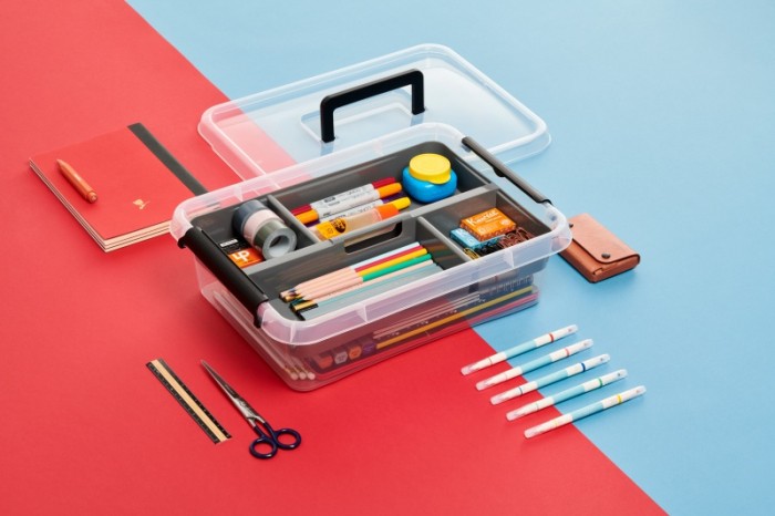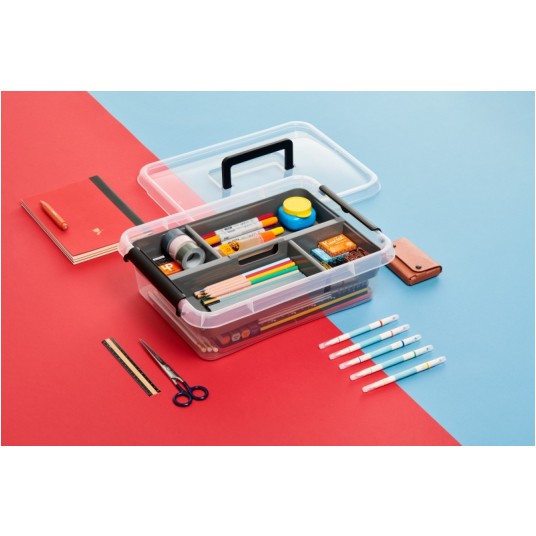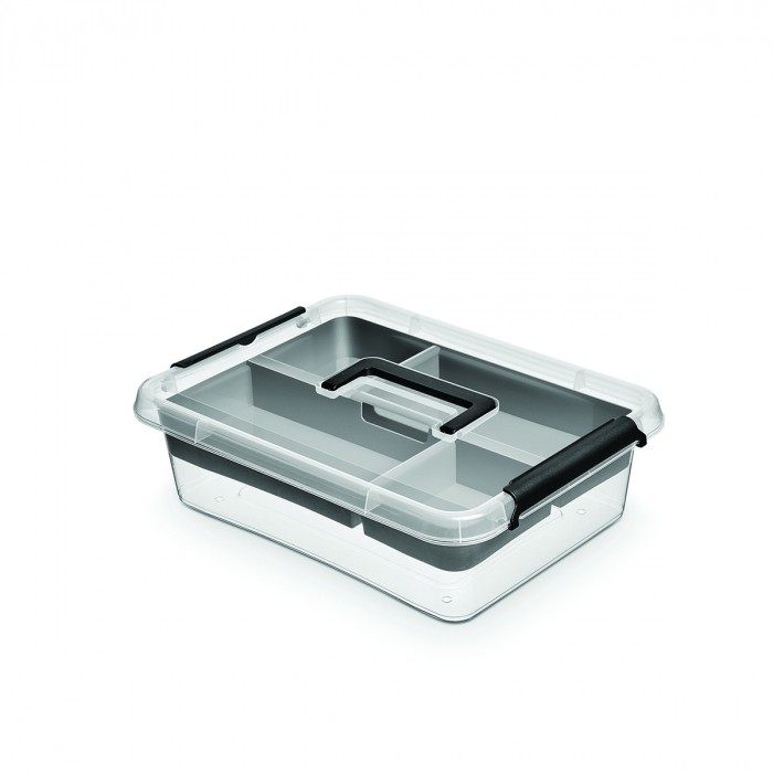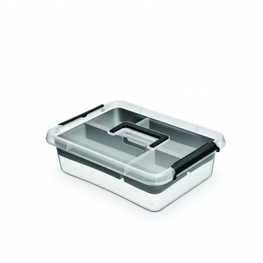 Pojemnik do przechowywania Moxom insert box, 8,5l, z rączką, z klipsami, transparentny grafit