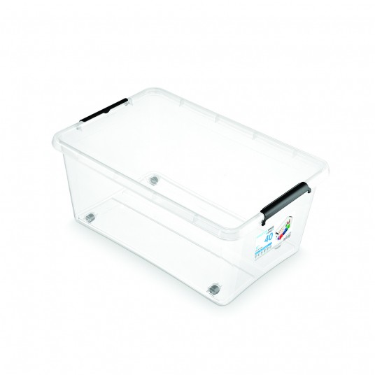 Pojemnik do przechowywania Moxom simplestore box, 40l, z klipsem, na kółkach, transparentny