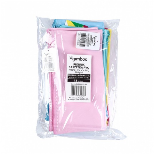 Piórnik saszetka Gimboo, płaska, pvc, 280 mic, mix kolorów pastel