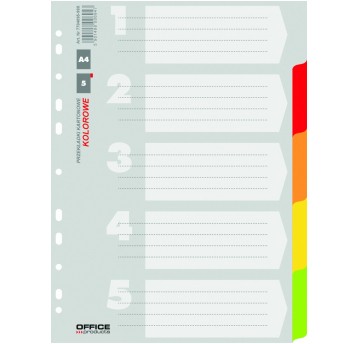 Przekładki kartonowe, A4, 1-5 kart., mix kolorów