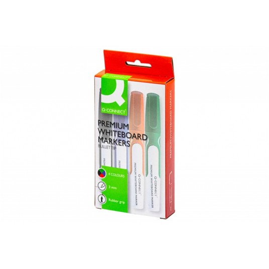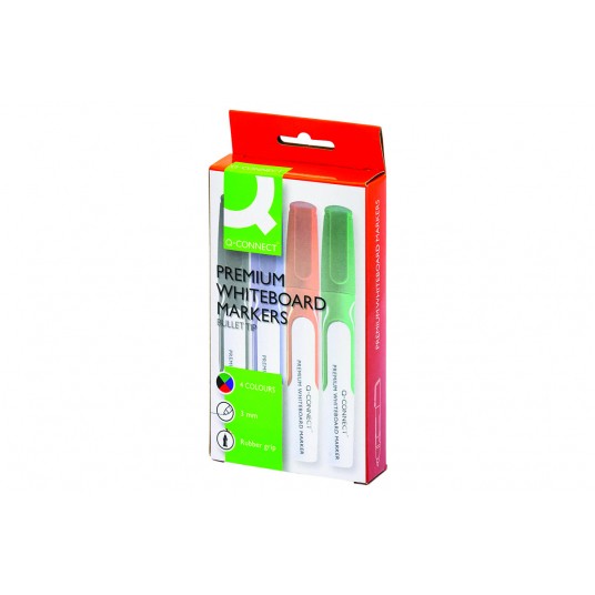 Marker do tablic Q-Connect premium, gum. rękojeść, okrągły, 2-3mm (linia), 4szt., mix kolorów / kf26113