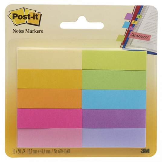 Zakładki indeksujące Post-it® (670-10ab), papier, 12,7x44,4mm, 10x50 kart., mix kolorów