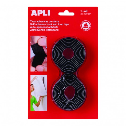 Taśma samoprzylepna Apli, z rzepem, 20 mm x 1 m, 2 szt., czarna, blister