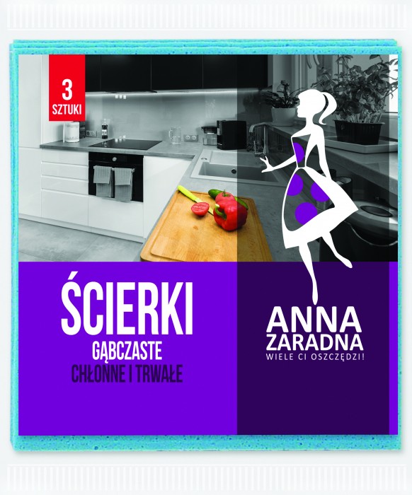 Ścierki gąbczaste Anna Zaradna, 3 szt., mix