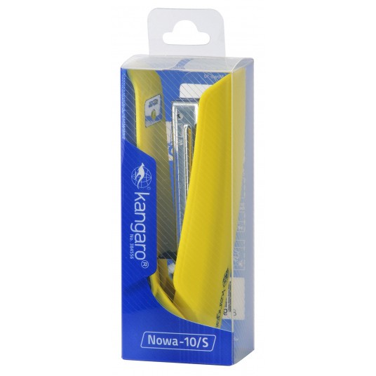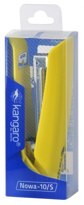 Zszywacz Kangaro nowa-10/s, zszywa do 15 kartek, Plastkowy, w pudełku pp, żółty