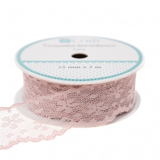 Tasiemka koronkowa, 2,5 cm x 2m pudrowo-różowa
