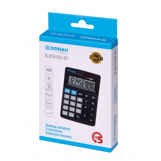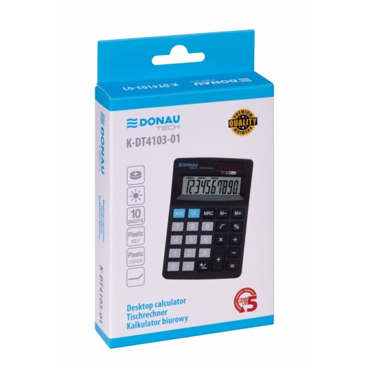 Kalkulator biurowy DONAU TECH, CI-SDC022SR, 10-cyfr. wyświetlacz, wym. 127x88x23 mm, czarny