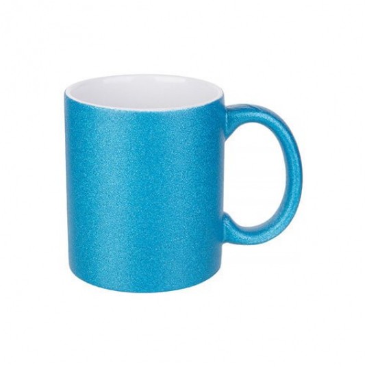 - Kubek z metalizowaną, błyszczącą i mieniącą się niebieską powłoka do sublimacji.