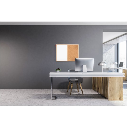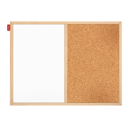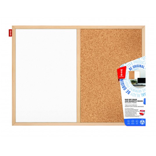 Tablica duo Memobe korkowa + suchościeralno-magnetyczna biała, rama drewniana, 60x40 cm