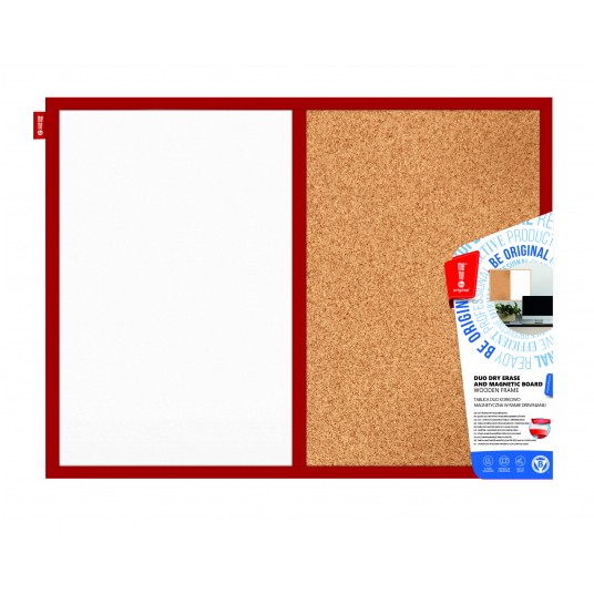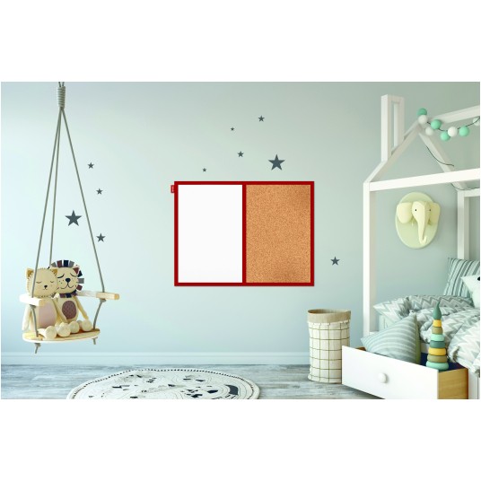 Tablica duo Memobe korkowa + suchościeralno-magnetyczna biała, rama czerwona, 60x40 cm