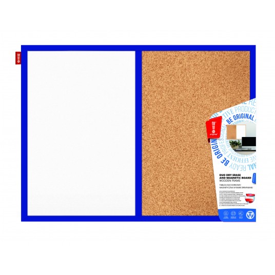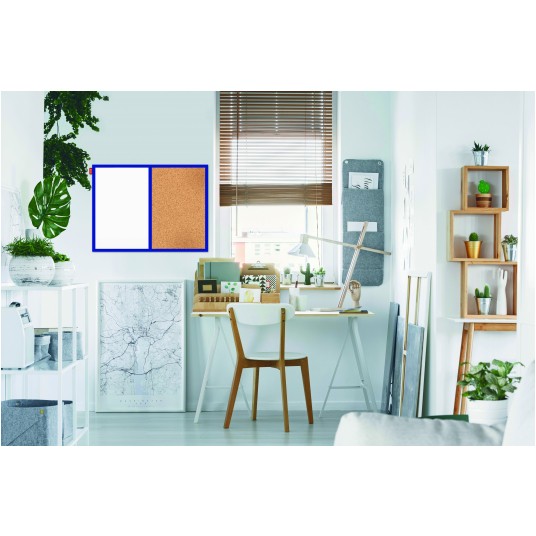 Tablica duo Memobe korkowa + suchościeralno-magnetyczna biała, rama granatowa, 60x40 cm