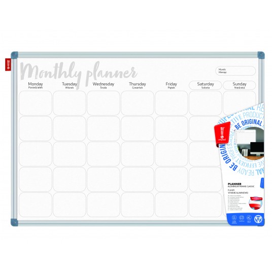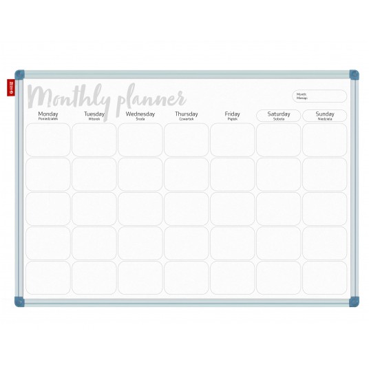 Tablica planer Memobe, miesięczny, nadruk w kolorze czarnym, rama aluminiowa classic, model 5, 90x60 cm