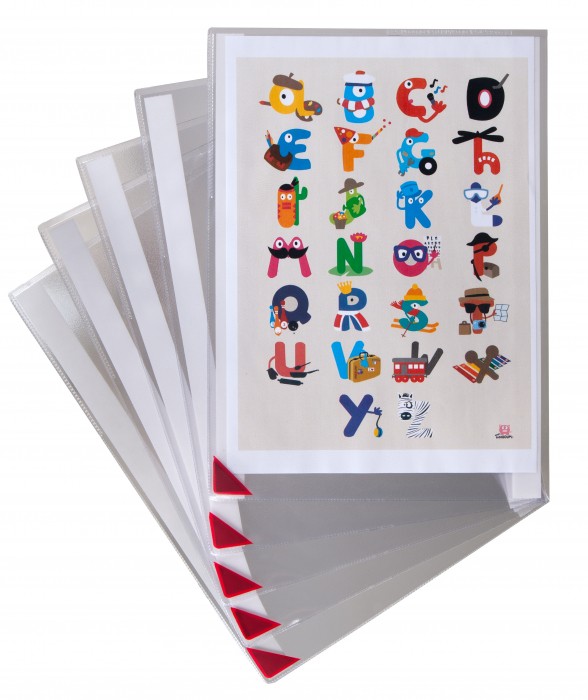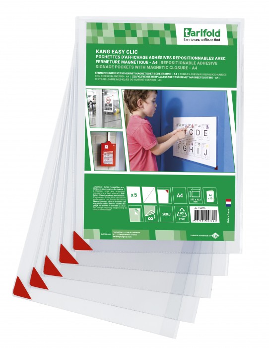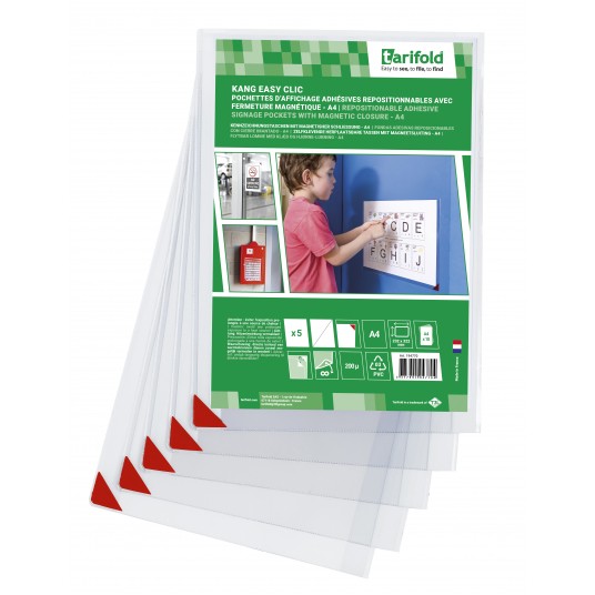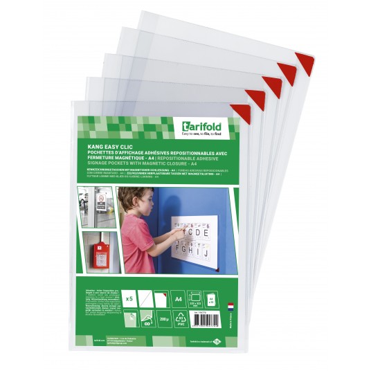 Kieszeń samoprzylepna tarifold A4 kang easy clic 5 sztuk z klipem magnetycznym czerwonym