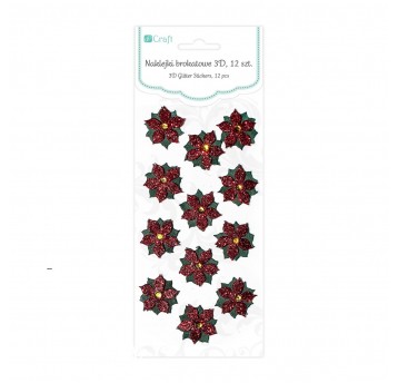 Naklejki brokatowe 3d - poinsettia , 12 szt
